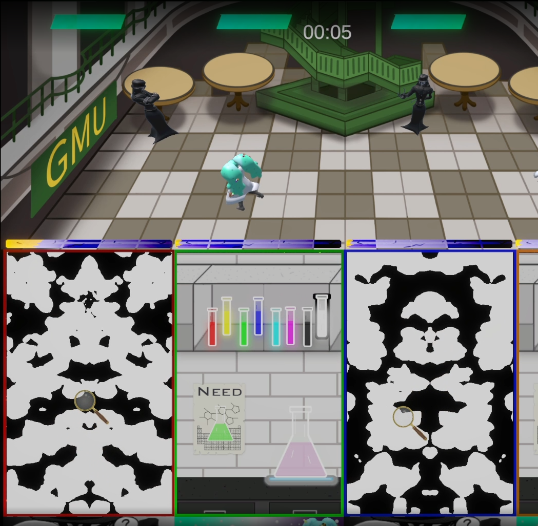 GMU Fighters is a 4-player puzzle fighter where they can choose characters representing different colleges of GMU. Where each character provides a unique puzzle type, and upon charging their attack, they can fight against other players.